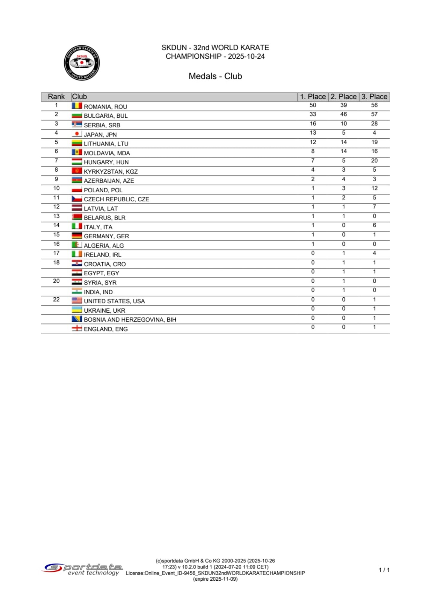 قرعة مجموعات فريق نادينا في كأس العالم 17 وبطولة العالم 32 شوتوكان للكاراتية التي يشارك فيها فريقنا في بولندا