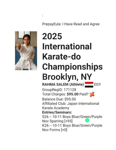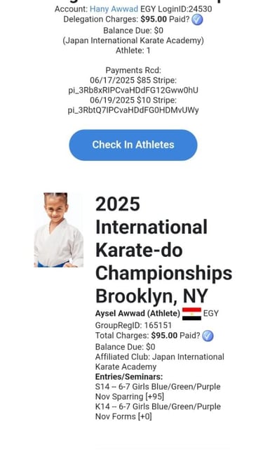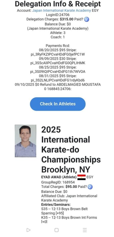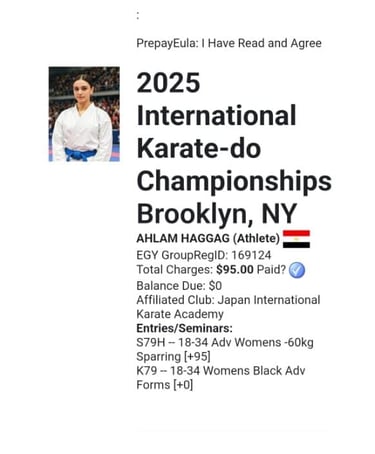 رسميا فريق نادينا يشارك في البطولة الدولية للكارتية دو2025 بروكلين نيويورك بعد حصوله على عضوية الاتحاد الامريكي للكاراتية للعامين 2025/2026